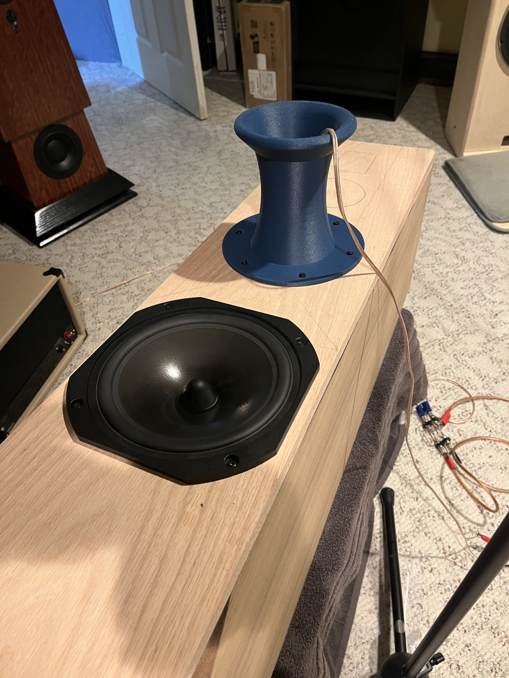 I am shooting for 40Hz, this ended up at 35Hz, so the next iteration is waiting to be printed. This also coincides with me pestering 😛 @rjj45 to help me figure out port placement over in the Hornresp thread.