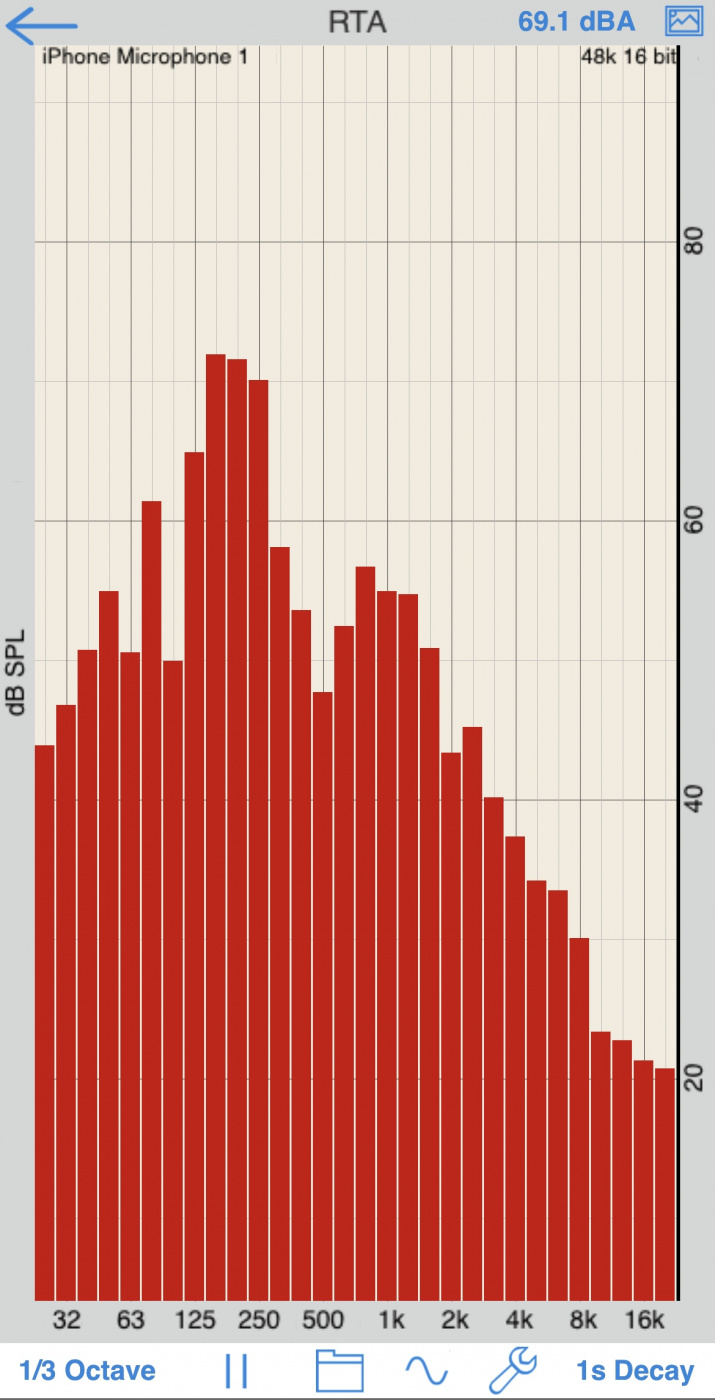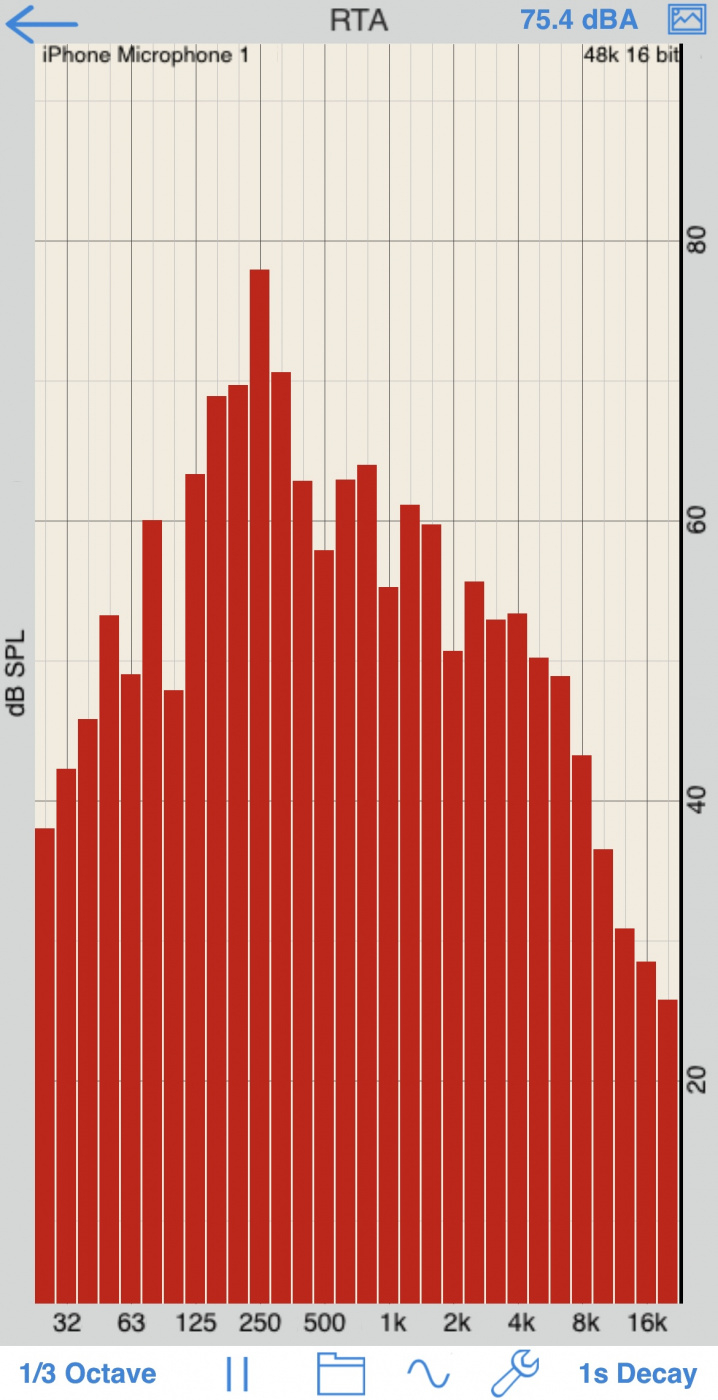 So these cabs are on a table, putting the mid pipe close to ear height. As I was standing there, music rocking in the garage, I happen to be right next to it and noticed a resonance. I stuck my phone in the pipe, pretty obvious where this pipe resonates!