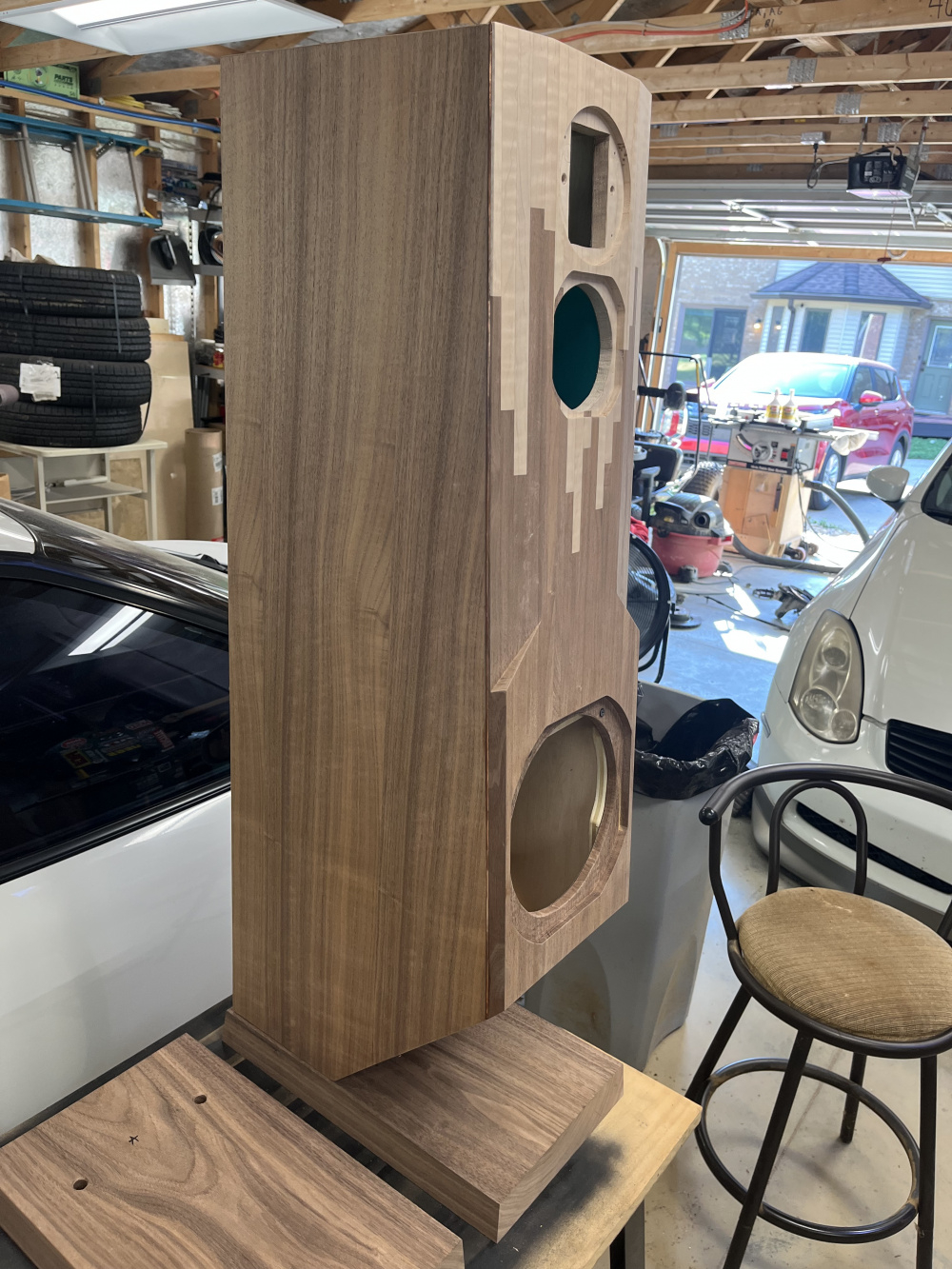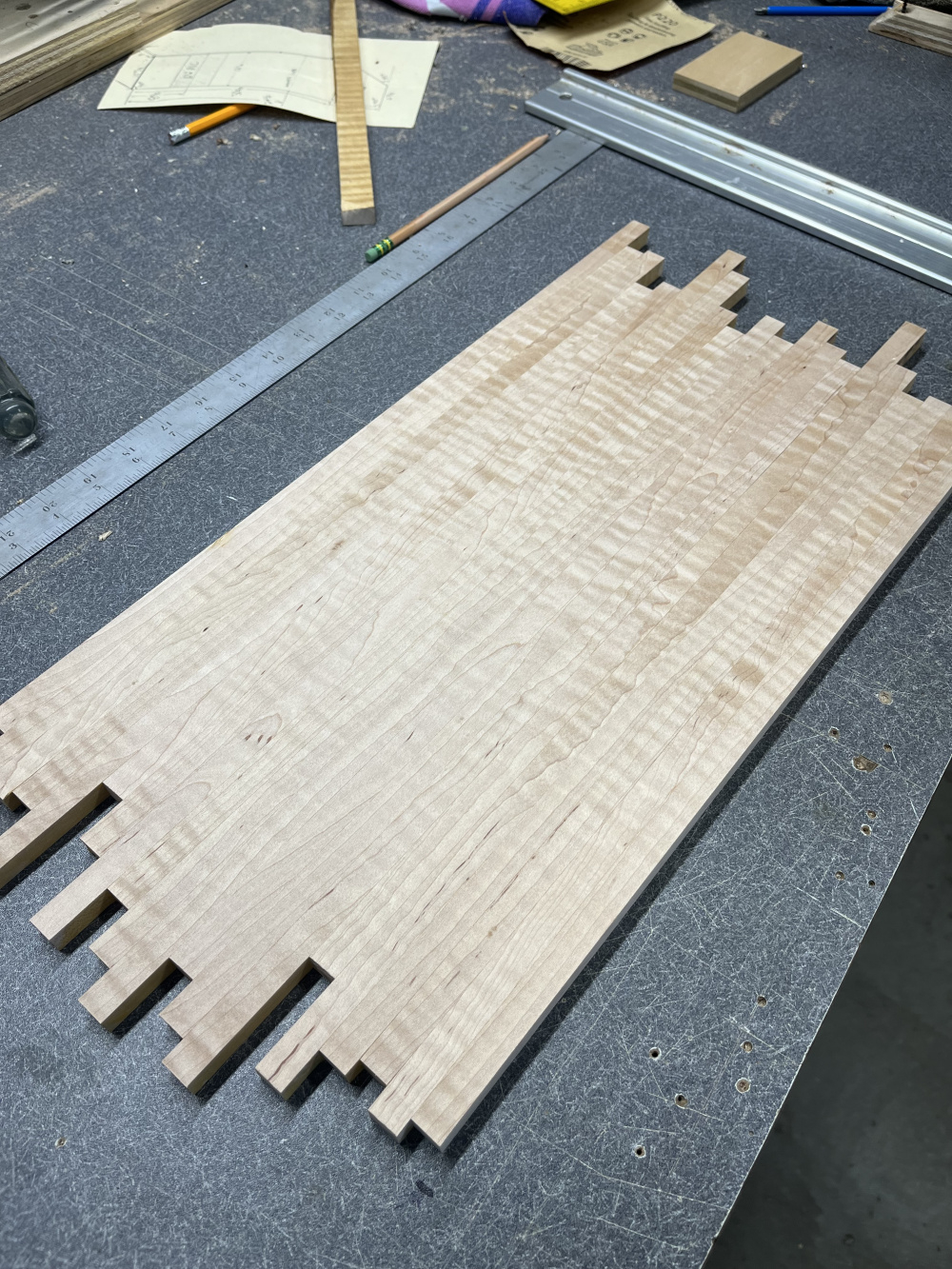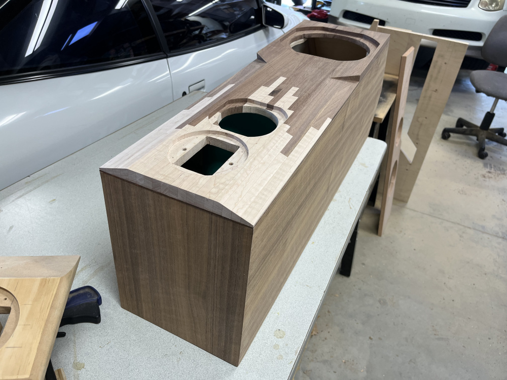 Started on a blank for trim pieces to go on the front of the bases. I felt it was a little to plain, so I glued up some maple to mimic the baffle.