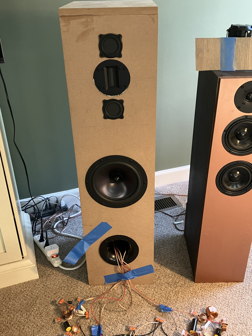 BMR tower knockoff coming along nicely. Too bad these BMR drivers are NLA. RS-225-4 and GRS tweeter
