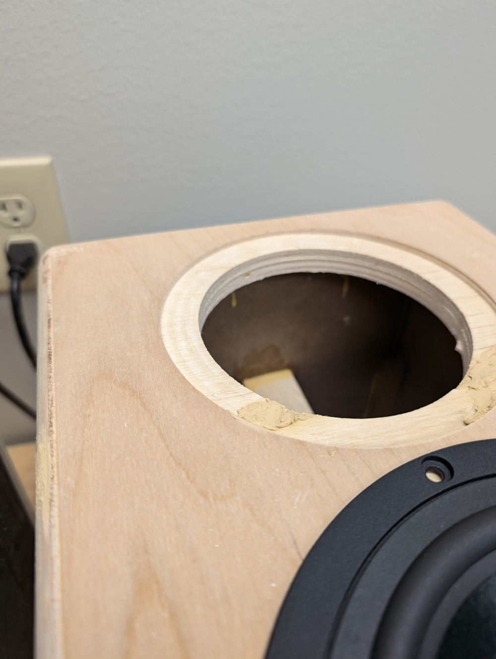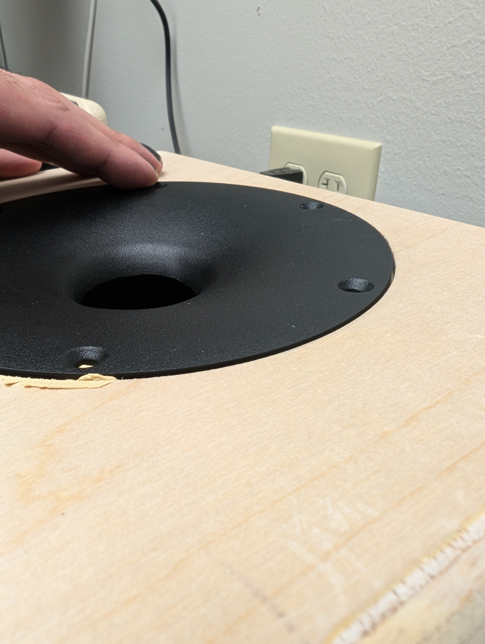 Drive cutouts for the woofer and tweeter/waveguide.