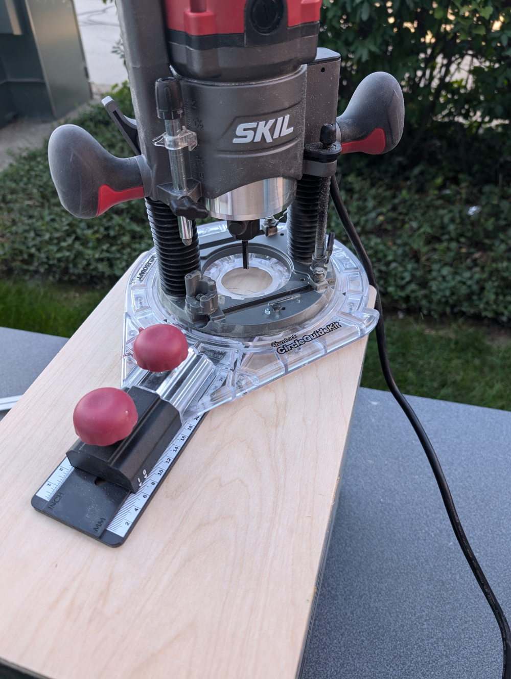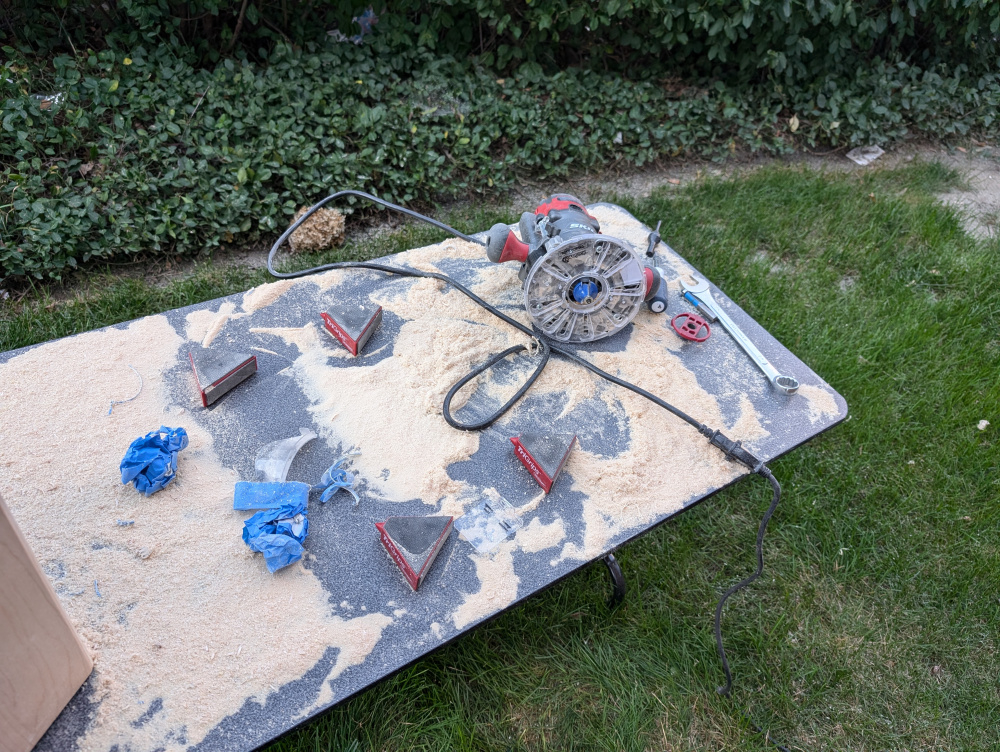 But, as things sometimes go, everything aligned one day! The first bit of luck was the enclosure. Work had a pair of 8in studio monitors that we had helped acoustically tune; and the company didn't want them back. So I had a pair of large, bookshelf speaker enclosures (aprox 1 cuft). After doing some modeling of woofers, I found that the ubiquities RS180P-4 worked excellently in the enclosure volume, tuned to ~40hz with an F3 of 35hz. Coincidentally, the woofer was also on sale at the time. I had a pair of Peerless DX25s laying around, and saw someone else post of how they fit in the Visaton waveguide with ease. The last piece of the puzzle was a router; and one I had been eying popped up on sale (Skil).