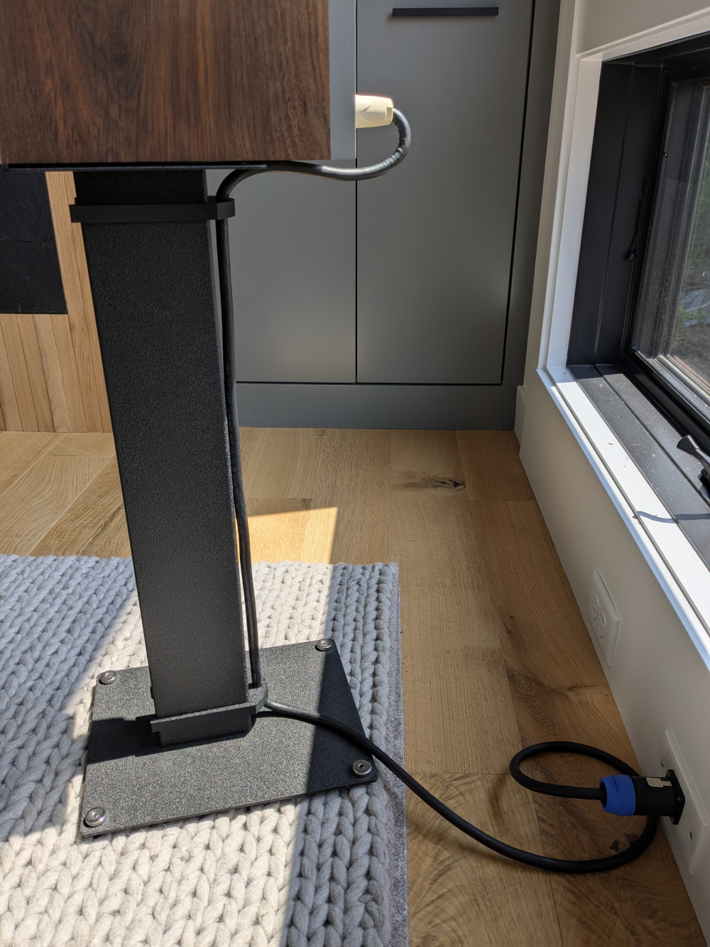 I can't remember where I bought these metal stands from many years ago. Could have been MCM. The tops and bottoms are metal plates that bolt onto 100x50 mm metal extrusion. They definitely rang until I filled them with aquarium sand and applied dampening to the top plate. Now just a dull thud when you tap them.