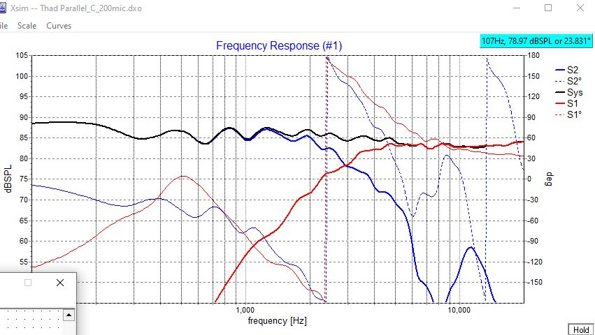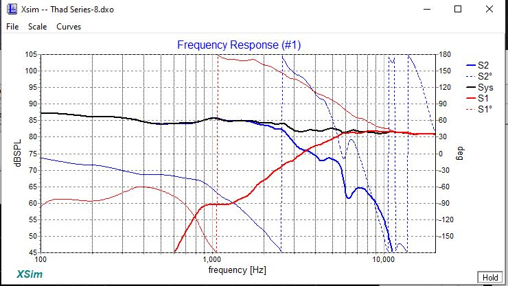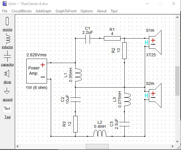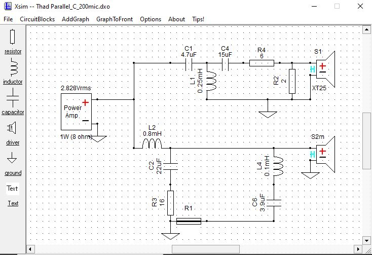 Played around with this for the last week but just couldn't tame the tweeter. I think the series network must have been creating a HF lobe that was bouncing of the ceiling. No matter what I did, I couldn't get rid of the smeary chirp I was hearing. So I broke down and tried the parallel model. That was the ticket. I've been tweaking on this today and this one is the winner!! Sensitivity is really low and it's a few more parts, but I'll gladly take that considering what I'm hearing now.