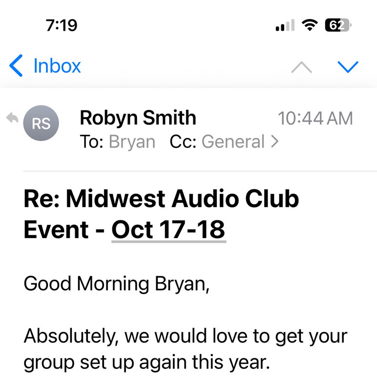 I never take our good relationship with the BW Ankeny for granted. Soooooo....To start each years' email, I always ask if they will have us back. Here's a snippet from the last email.